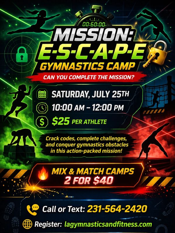 Improve your splits, backbends, and overall mobility in our Flexibility Camp designed to help athletes move with ease and confidence. Through fun, guided stretching and strength exercises, athletes will safely increase flexibility while building skills that carry over to every event.